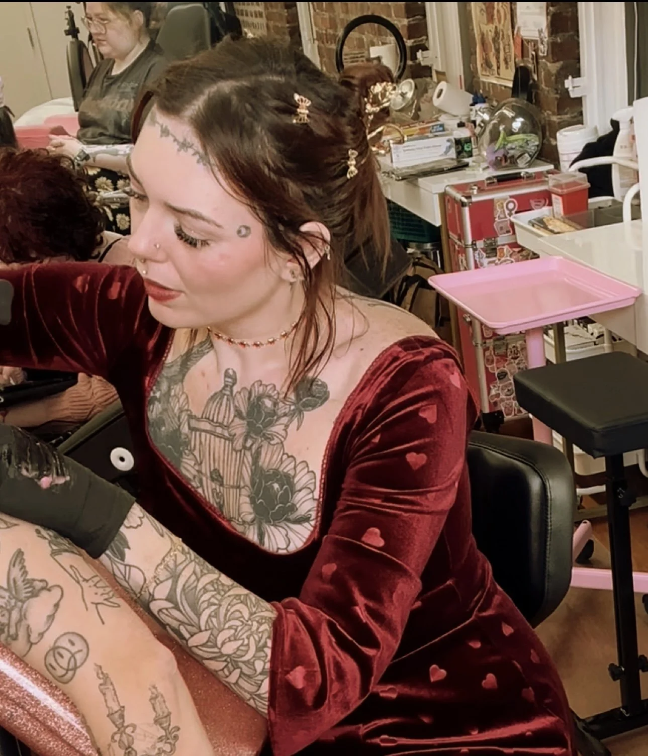 Honestly, it was something almost handed to me. When I met my partner, he saw in me what I didn’t see in myself and was adamant that tattooing was my path. I was in school for psychology when one day a shop owner reached out complimenting my art. From there, I decided to take the leap and asked about an apprenticeship. I was asked, “are you willing to dedicate everything and sacrifice everything for this life?” That’s when I dropped out of school to pursue this career, and never turned back.